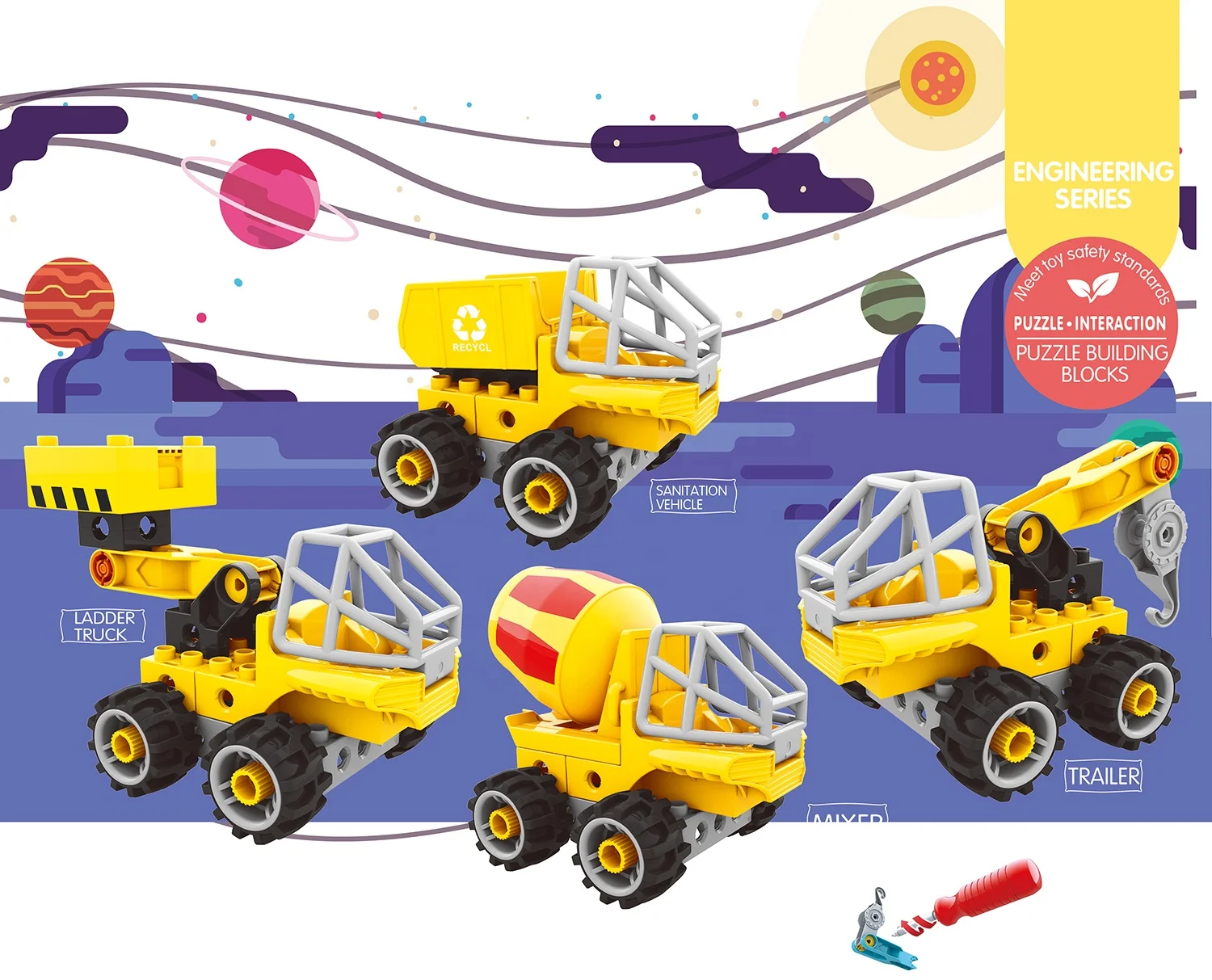 ITTL Early Educational 23PCS Interactive DIY Blocks Engineering Vehicle Truck Child Training Toys Building Block Toys for Kids